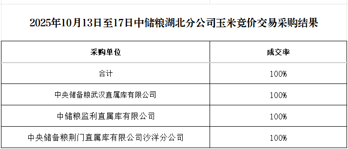 本周湖北贸易粮成交2025玉米14200,成交率100%,成交均价2380/吨。